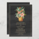 Illustration of pineapple decorated with flowers. Dark grey watercolor inspired background.