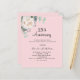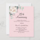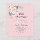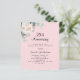 A soft pink coloured background. Decorated with a white floral, peony flower and green watercolored eucalyptus greenery. Personalize and add your names and the details.