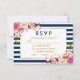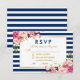 Floral Watercolor Pink Blush Blue Stripes Wedding RSVP Card with Meal