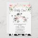 Sweet pink floral holy cow themed baby shower invitation featuring a cow and calf and a black cow print pattern. This holy cow baby shower invitation for a baby girl also features some pink bows.