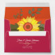 Boho, elegant, floral, modern retro, bold magenta pink and orange 5x7 envelope for wedding invitations with return address, sunflower and romantic gold rope heart.