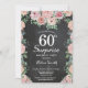 Floral Pink Peonies Surprise 60th Birthday Invitation for Women. Watercolor Floral Flower. Elegant Pink Rose and Peony Flowers. Adult Birthday. Chalkboard Background. Black and White. 13th 15th 16th 18th 20th 21st 30th 40th 50th 60th 70th 80th 90th 100th, Any Ages. For further customization, please click the "Customize it" button and use our design tool to modify this template.
