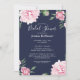 Floral Pink Peony Navy Background Bridal Shower Invitation