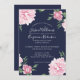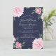 Delight your guests with these floral wedding invitations featuring pink painted peonies on a navy background.