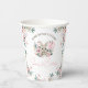 Modern floral girls some bunny themed first birthday paper cups featuring a floral arrangement, pink balloon and cute bunny rabbit.