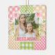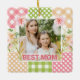 This vibrant “Best Mom” design features a warm mother‑and‑child photo framed by a colourful floral plaid collage. The patchwork border blends gingham, polka dots, and soft pattern blocks in pink, green, orange, and white, accented with illustrated hibiscus flowers and golden botanical elements. The mix of textures creates a bright, handcrafted feel with a joyful, heartfelt mood. Perfect for Mother’s Day, birthdays, or celebrating a truly special mum, this design pairs sentiment with bold, modern colour and floral charm.