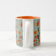Floral pattern mug. Digital drawing pattern with flowers in warm tones on sage green.