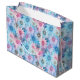 This large size paper gift bag is shown in a lovely blue and pink daisy floral print.
