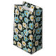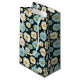 This small size paper gift bag is shown in a lovely blue and white daisy floral print on a dark colour background.