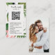 This wedding online RSVP card, easily customizable with your online RSVP information and your own QR Code to send your guests directly to your wedding website, features a beautiful illustration of pink tropical flowers and green jungle leaves and is created to coordinate with our "Tropical Jungle Wedding" collection.