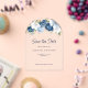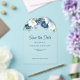 Elegant floral watercolor dusty blue, white, and navy floral bouquet wedding save the date with QR code card. The card features a script "Save the Date", that can be changed to a font type of your choice that are available here when you click the "Personalize" button. Add your wedding website and QR Code on the reverse side so your guests can keep up do date with your plans
