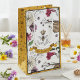 The Front and Back of the gift bag features a hand-drawn Queen Bee Royal Gold Crown drawing in black ink, of a regal queen bee and her royal gold crown , surrounded by exotic flowers. Ideal for Mother's Day, birthdays, anniversaries, bridal showers.