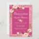 Quinceanera Hot Pink Floral Glitter Invitation Card