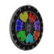 Cette magnifique carte de fléchettes présente une image numériquement créée d'un cercle de coeurs d'amour. Chaque coeur est une couleur différente de l'arc-en-ciel. Les coeurs rouge, orange, jaune, vert, bleu, indigo et violet sont une façon ludique et éclatante d'exprimer votre amour pour un petit ami, une petite amie, un mari ou une femme. L'arrière - plan est noir pour créer un impact maximum.
