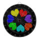 This awesome dart board features a digitally created image of a circle of love hearts. Each heart is a different colour of the rainbow. The red, orange, yellow, green, blue, indigo and violet hearts are a bright fun way of expressing your love for a boyfriend, girlfriend, husband or wife. The background is black to create maximum impact.