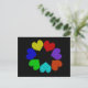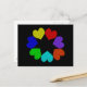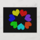 This postcard features a digitally created image of a circle of love hearts. Each heart is a different colour of the rainbow. The red, orange, yellow, green, blue, indigo and violet hearts are a bright fun way of expressing your love for a boyfriend, girlfriend, husband or wife. The background is black to create maximum impact.