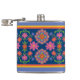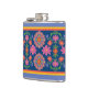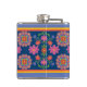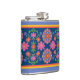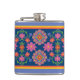 Floral Rangoli Pattern Border on Blue Hip Flask