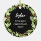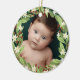 Beautiful floral Christmas ornament with your photo inside a floral berry wreath of sage green greenery, white flowers, and red berries. Add your baby's name and the year on the back.