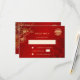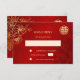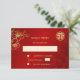 Golden floral line art cherry blossoms on a shimmering red background and a gold double happiness symbol. RSVP Chinese Wedding Card.