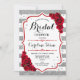 Elegant red white design with faux glitter silver. Features script font, stripes and red roses. Perfect for a stylish Bridal Shower. Message me if you need further customization.