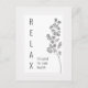 Our floral white on white motivational saying postcard says: "Relax... it's good for your health" on front, with customizable text on back that currently offers wording for a business promotion for healing centre clients. All text on back of the card can be easily revised on the Personalization template. The postcard is part of our Motivational Reminders Collection, which includes a business card, poster, coaster, and pillow in the same motif.