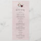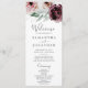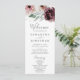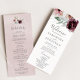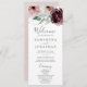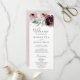 This floral romance wedding program is perfect for an elegant wedding. The modern rustic boho design features romantic watercolor flowers in soft tones of burgundy, mauve, blush pink and cream white with green leaves. Include the name of the bride and groom, the wedding date and location, thank you message, order of service, bridal party and an optional "in loving memory" memorial.