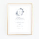 Floral Rose Crest Affiche de bienvenue Mariage. Affiche de bienvenue Mariage bleu Dusty. Vintage Floral Mariage Crest