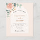 A blush rose gold background with an arch. Decorated with a rose gold and pink floral, rose flower and green watercolored eucalyptus greenery. Personalize and add your names and details.