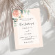 A blush rose gold background with an arch. Decorated with a rose gold and pink floral, rose flower and green watercolored eucalyptus greenery. Personalize and add your names and details.