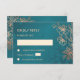 Rose gold floral line art cherry blossoms on a teal background. Matching wedding invitation available.