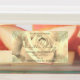 Make a lasting impression with this elegant and modern product label design featuring a rose blossom in light cream grey and pink colours with pretty palm leaves and sparkling faux glitter stars.