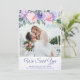 Faire-part moderne perwinkle mauve et rose aquarelle fleurie carte, avec un arrière - plan texturé peri très léger. Nom, date et information de la Personnaliser.