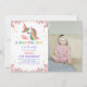 Floral Rose Unicorn Birthday Invitations with photo