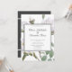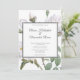 Elégante Faire-part de mariage Florale aux Roses Blanches et touches de verdure sur arrière - plan blanc, et inversé gris-noir.