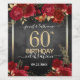 Elégant Faux en or confetti met en évidence sur la bordure supérieure et inférieure. Roses rouges profondes et brillantes aux accents floraux dorés. Tout le texte est ajustable et facile à changer pour vos besoins de partie. Grande élégante conception modèle de 60ème anniversaire.