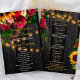 Elegant rustic budget wedding ceremony program template featuring beautiful bright yellow orange sunflowers and red burgundy marsala roses bouquets and strings of twinkle lights on a country style dark brown wooden background. +++++++++++ + Personalize it with your your details.+++++++++++ Suitable for rustic country vintage chic summer garden | autumn fall outdoor weddings.