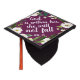 Beautiful grad cap topper features the scripture quote "God is within her, she will not fall" from Psalms, in white brush script lettering on a rich plum purple background adorned with white watercolor flowers and green foliage. Personalize with your class year.