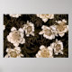 Floral seamless pattern. Garden flowers peonies and leaves. Black and design gold foil. Vintage illustration. Hand realistic drawing. Vintage. Background to create paper, wallpaper, summer textile.