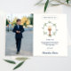 Share your gratitude with this refined First Communion card. Your son photo appears on the left, while the right side features a delicate floral wreath with bread and chalice icons. Matching leaf and branch pattern on the back completes this editable keepsake.