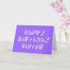 This purple floral sister birthday greeting card has the birthday message "My dear sister, I hope your birthday is blessed with love, laughter, and hugs." The front cover on the greeting card is purple with daisy flowers decorating the letters of happy birthday sister.