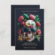 Floral Skull Dark Grey Halloween Party Invitation