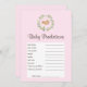 This Floral Sleeping Deer Girl Baby Shower baby predictions game is perfect for a woodland baby shower for a girl. The watercolor design features a sleeping baby deer in a floral wreath with simple calligraphy on a light pink background.