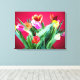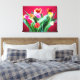A colorful bunch of tulips on a red background as a canvas print A real eye-catcher wall art for your living spaces.