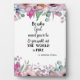 St. Catherine of Siena Quote in calligraphy "Be who God meant you to be and you will set the world on fire." Floral sprays on the top and bottom.