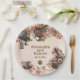 Steampunk elements including gears and clocks combine with pink and white flowers to give a soft touch to this plate. Perfect for the gothic, steampunk, or alternative wedding, bridal shower, rehearsal dinner, engagement party, anniversary celebration, birthday, or other steampunk event. The background is a soft pink and peach hued watercolor wash. Available with matching products.