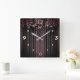 Floral, striped, retro square wall clock