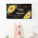 Stylish Engagement party banner with a black background , watercolor yellow floral sunflowers and string lights. A great banner to hang to welcome your guests to your engagement party. Just add your names to personalize. All text can customized if needed Oh and congratulations.
