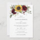 Floral Sunflowers Burgundy Greenery Rustic Wedding Invitation