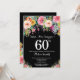Floral Surprise 60th Birthday Invitation for Women. Watercolor Floral Flower. Black Background. Pink, Yellow, Orange, Purple Flower. Adult Birthday. 13th 15th 16th 18th 20th 21st 30th 40th 50th 60th 70th 80th 90th 100th, Any Ages. For further customization, please click the "Customize it" button and use our design tool to modify this template.