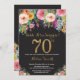 Floral Surprise 70th Birthday Invitation for Women. Watercolor Floral Flower. Black and Gold Glitter. Pink, Yellow, Orange, Purple Flower. Adult Birthday. For further customization, please click the "Customize it" button and use our design tool to modify this template.
